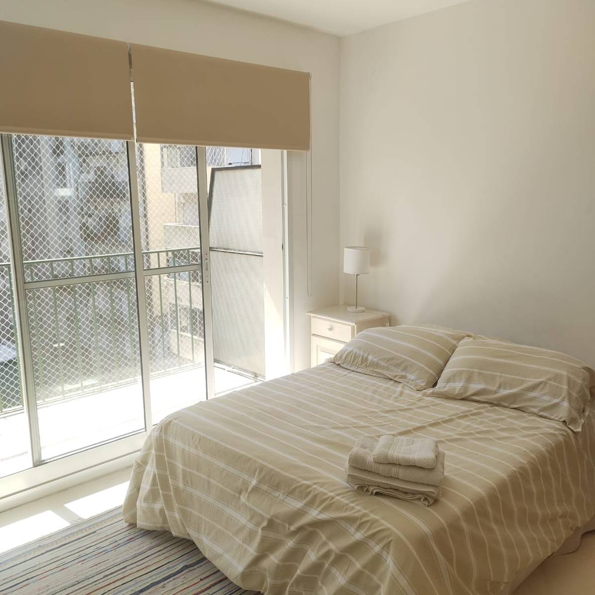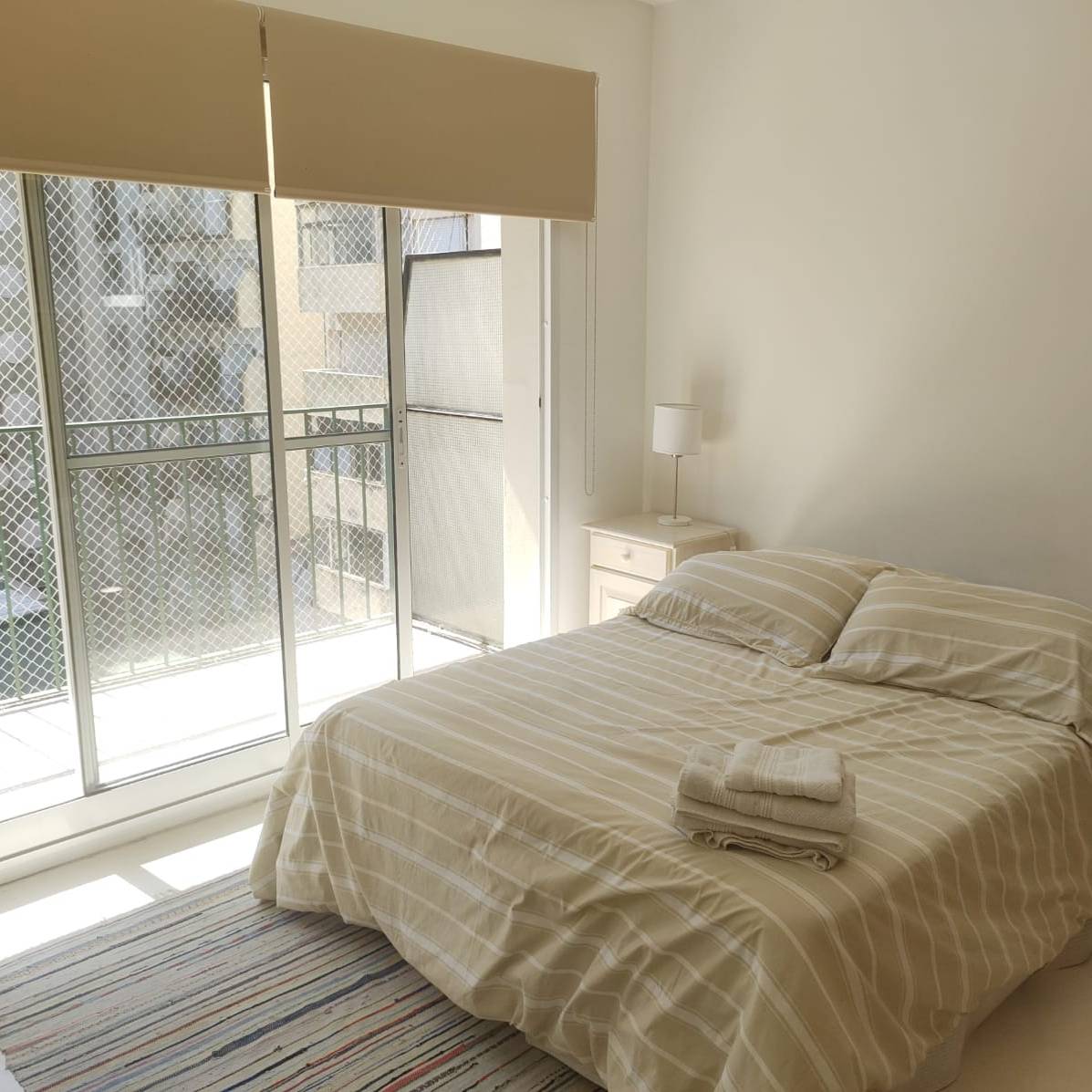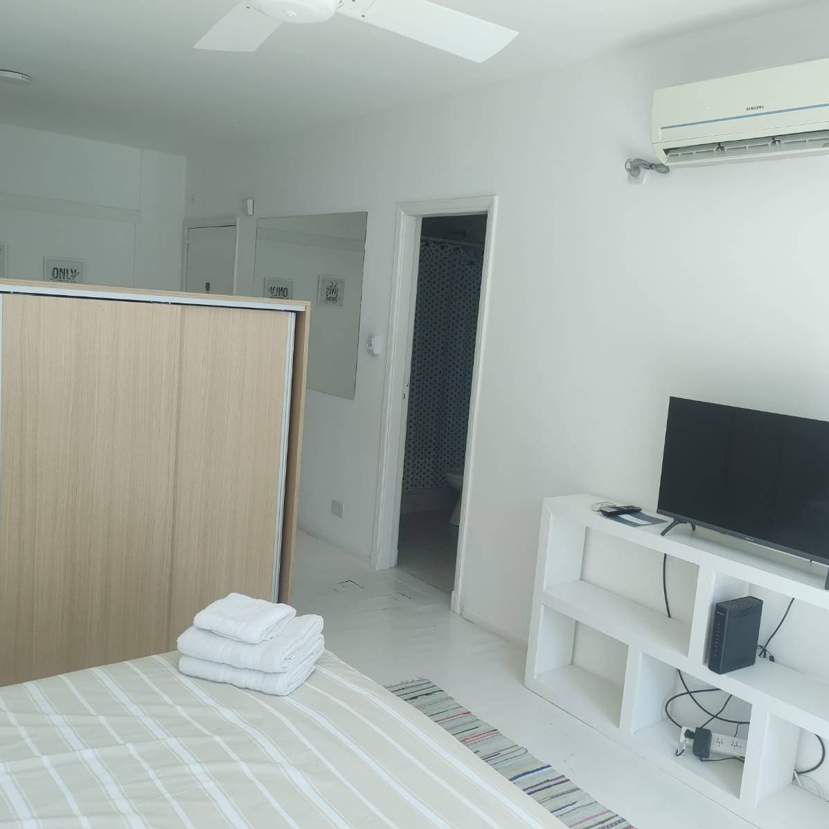 -Habitación: separada por un amplio armario, cuenta con cama somier de dos plzas, TV, ropa de cama y toallas.