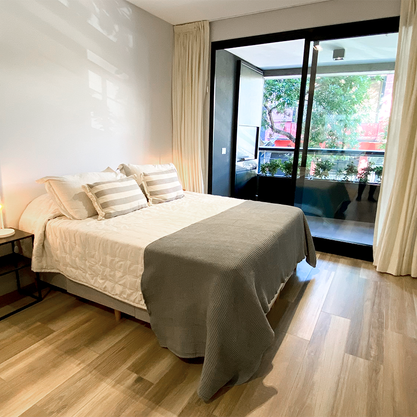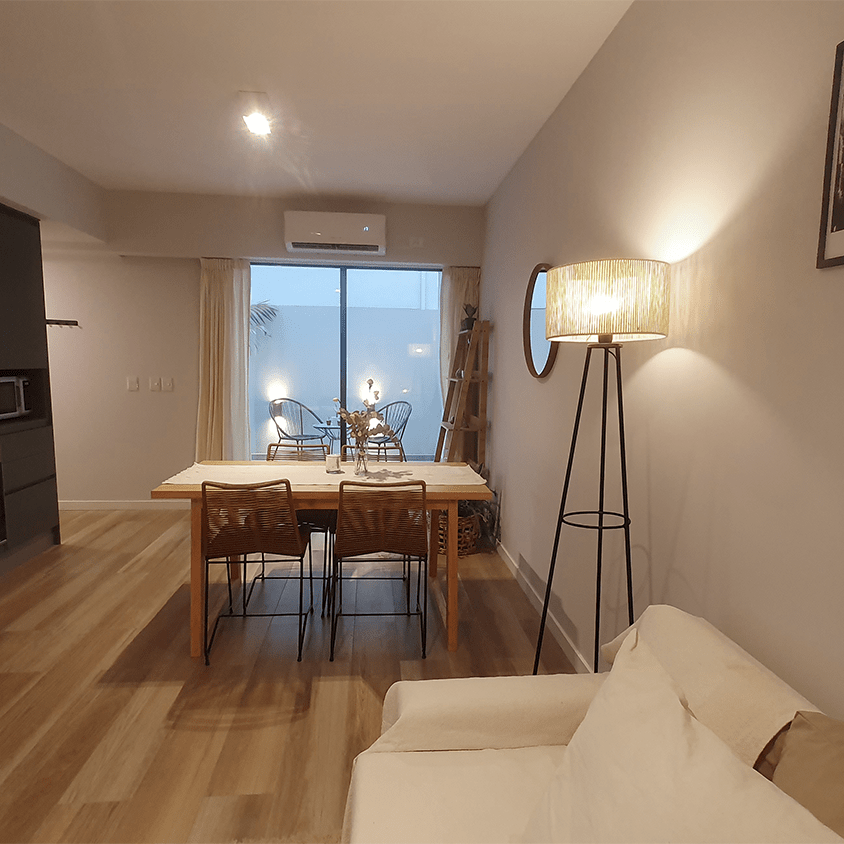 Hermoso y moderno monoambiente amoblado y equipado, con parrilla, balcón y patio propio.