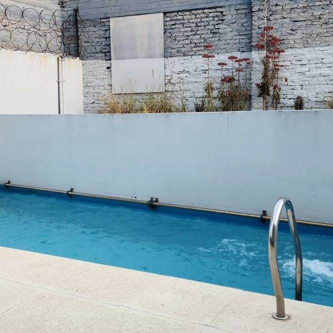 El edificio cuenta con piscina y parrilla.
