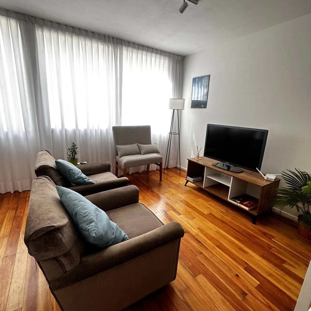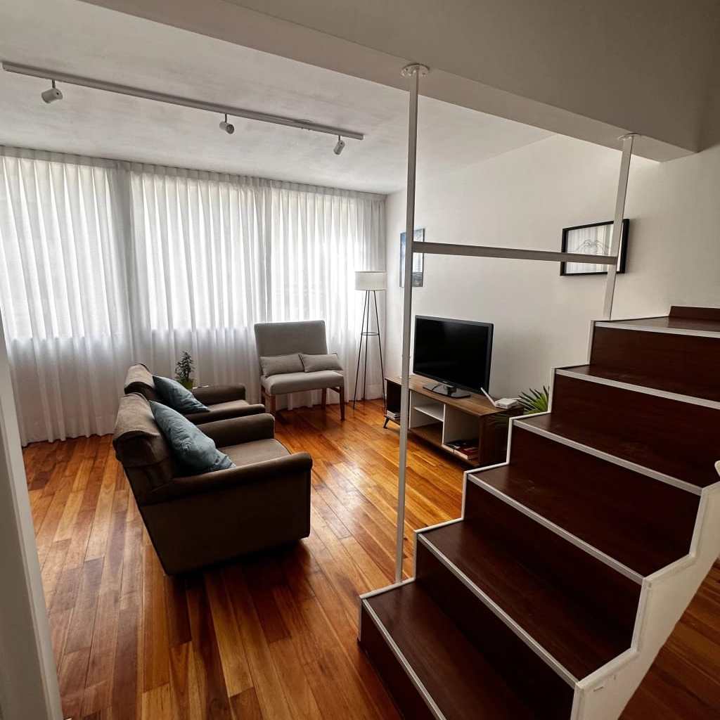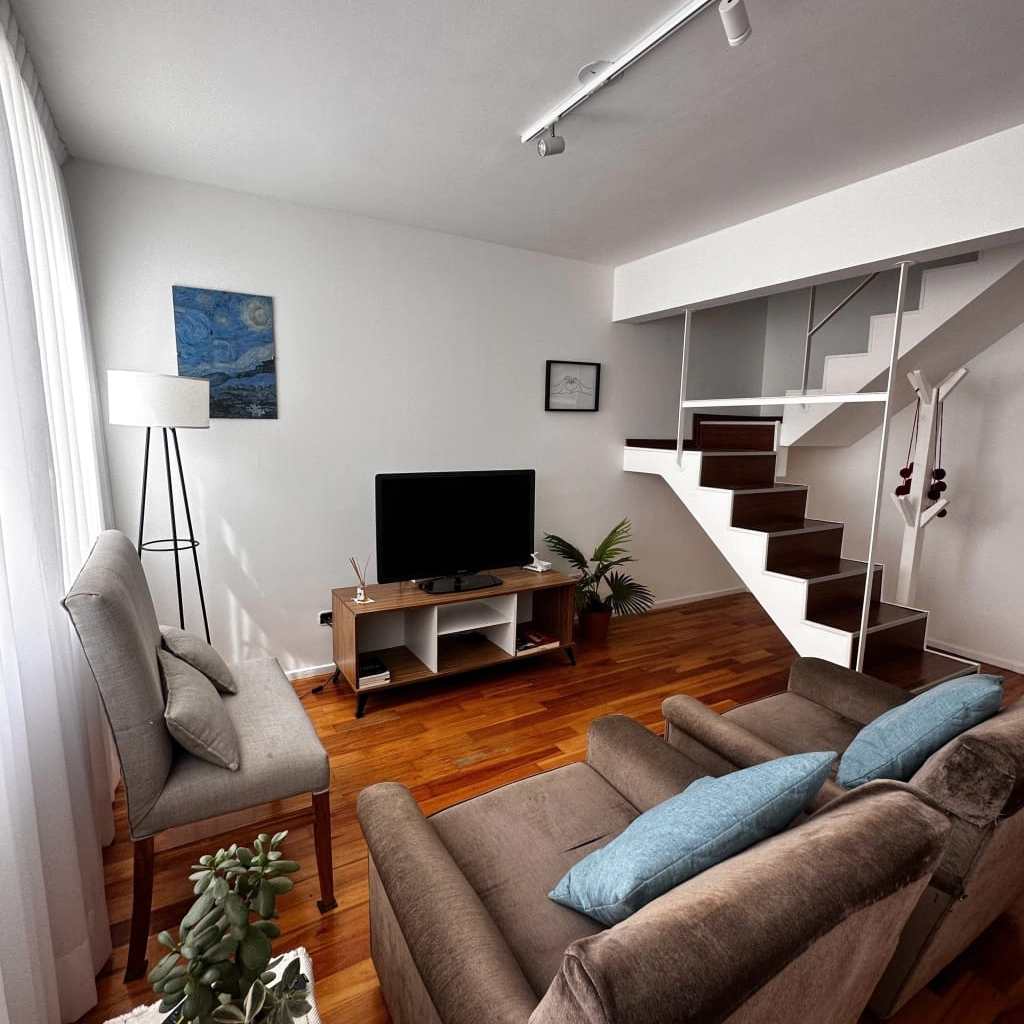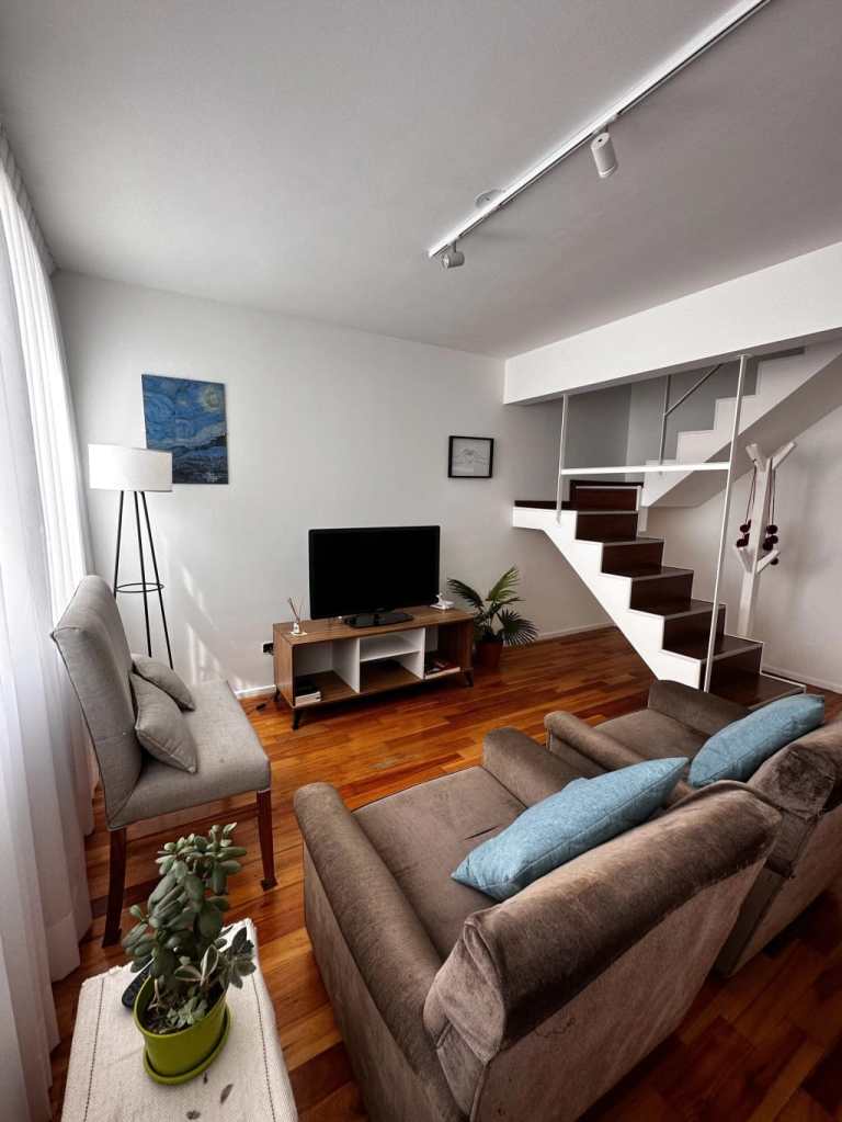 Se trata de un 3 ambiente con distribución en dúplex, con sus dos dormitorios en la primera planta, uno con cama de dos plazas y en el secundario dos camas singles, baño completo y vestidor.