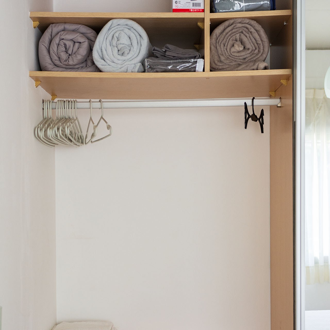 -Dormitorio: con cama matrimonial, amplio placard espejado, ropa de cama y toallas.