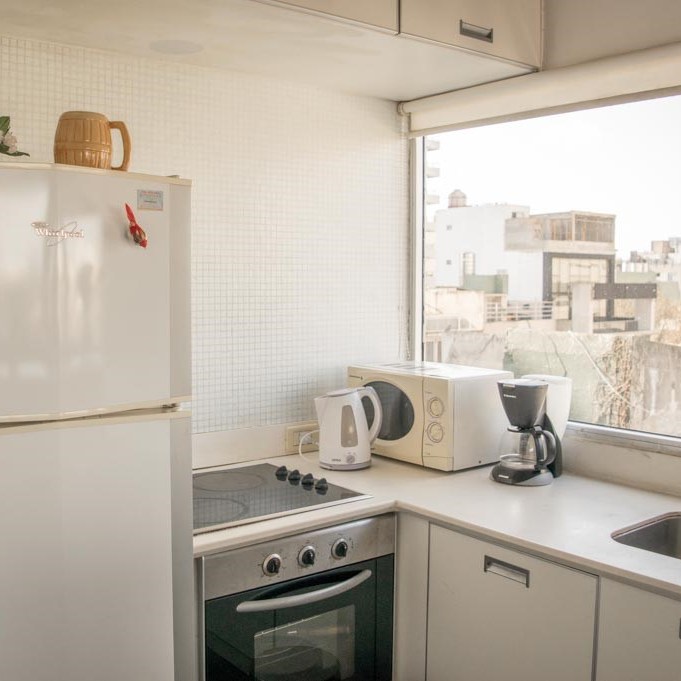 -Cocina: integrada y completa, con heladera grande, cocina 4 hornallas con horno, vajilla y utensilillos de cocina.