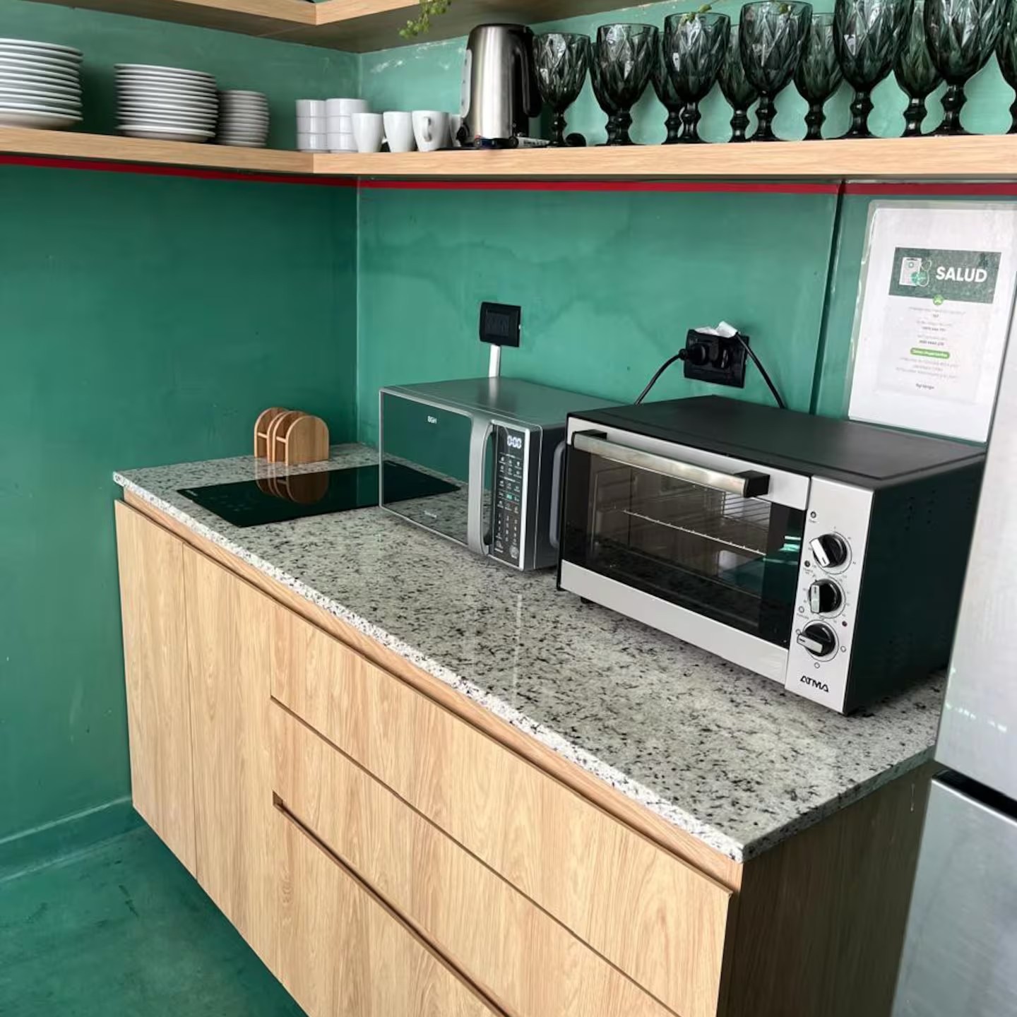 -Cocina totalmente equipada: Con horno, microondas, heladera, cocina eléctrica , cafetera , tostadora y todos los utensilios básicos de cocina.
