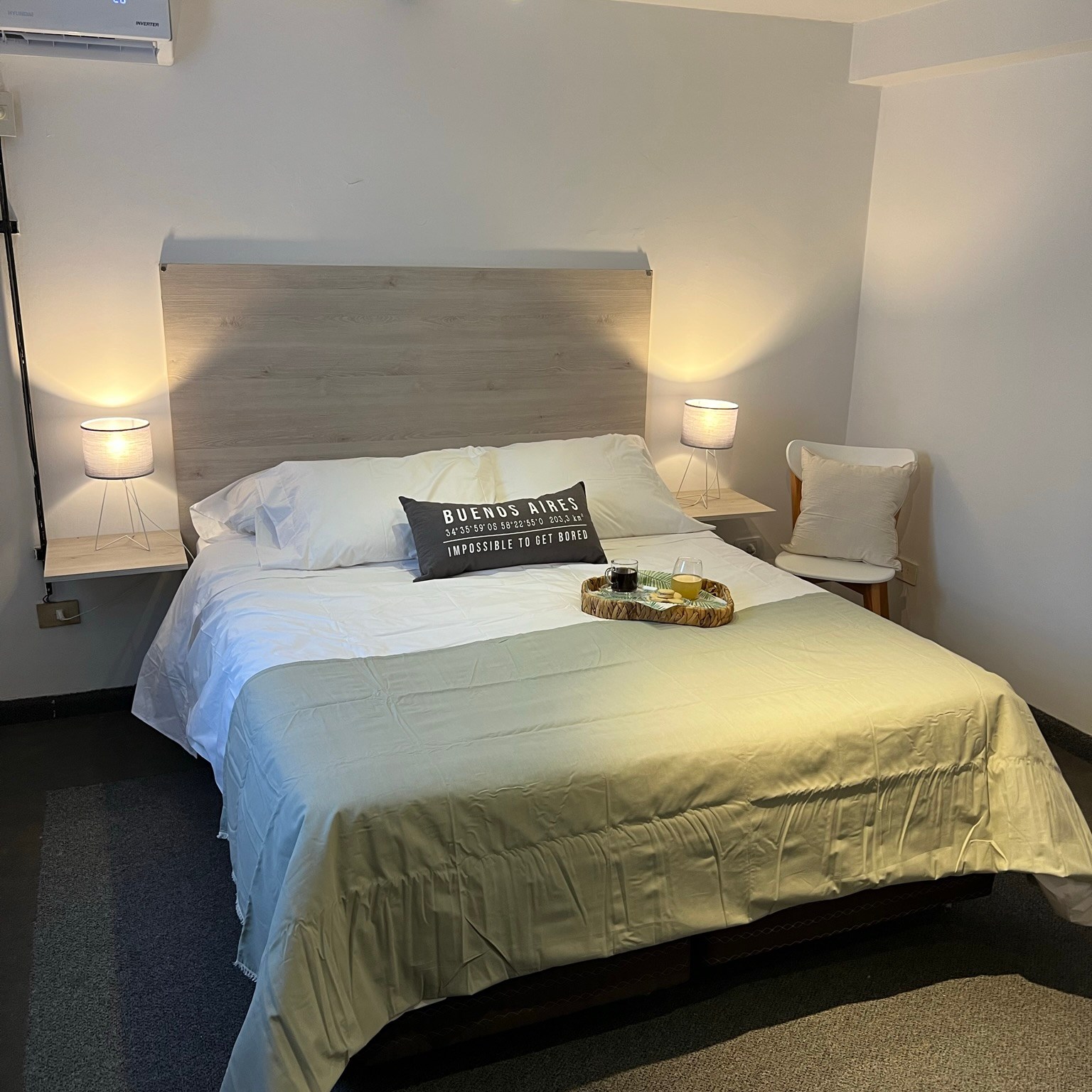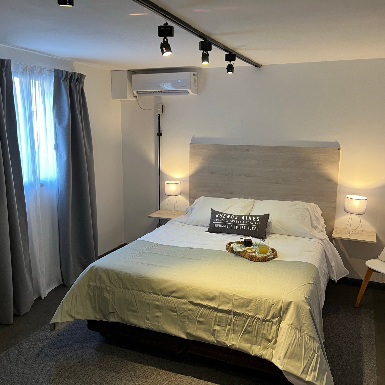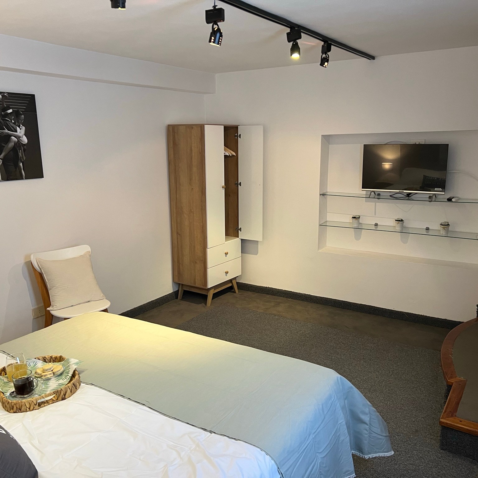 -Dormitorio espacioso: Con una confortable cama Queen, cómoda, perchero, Smart TV y aire acondicionado.