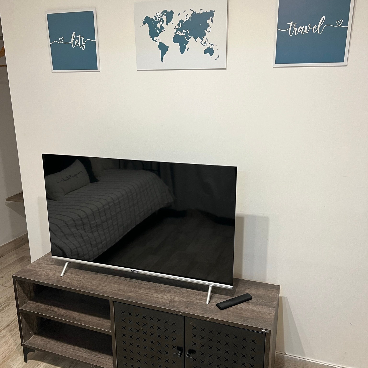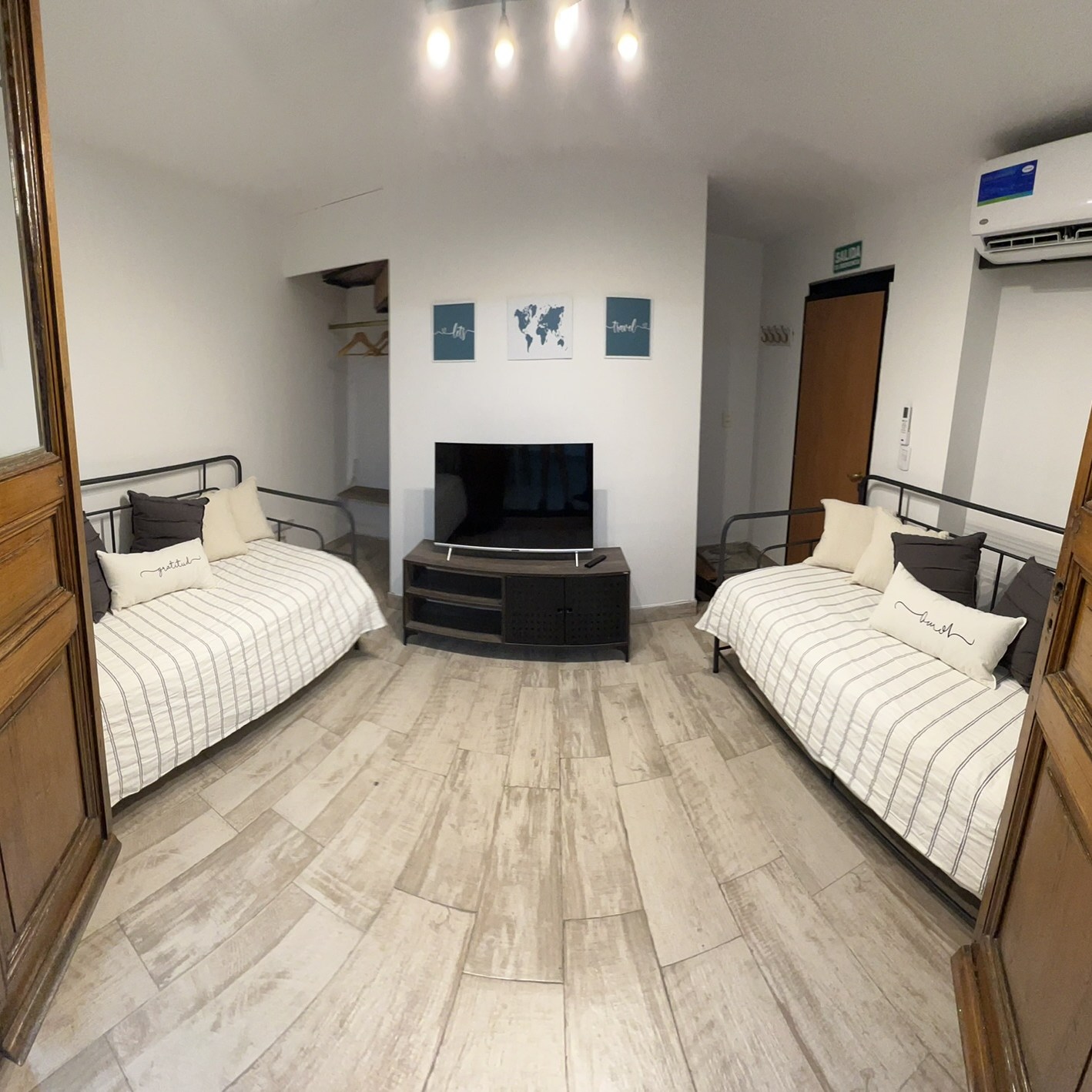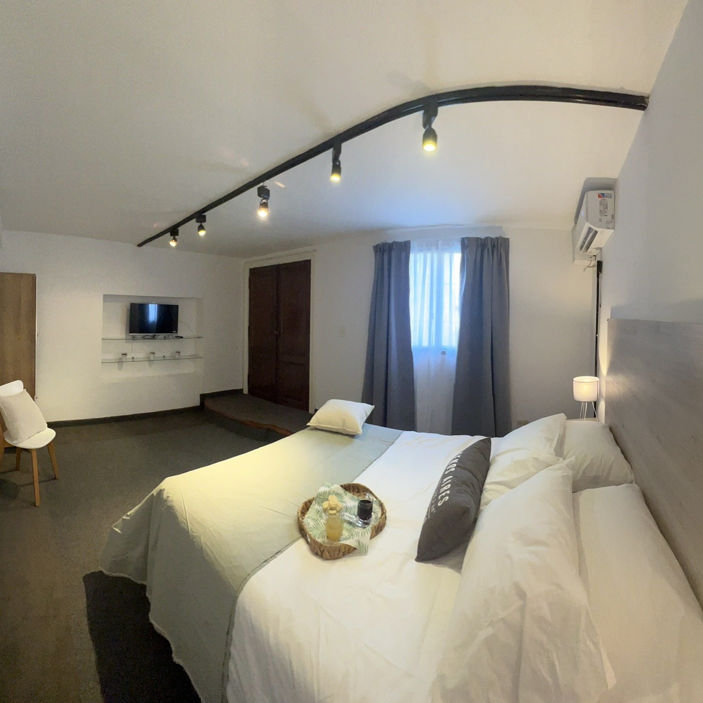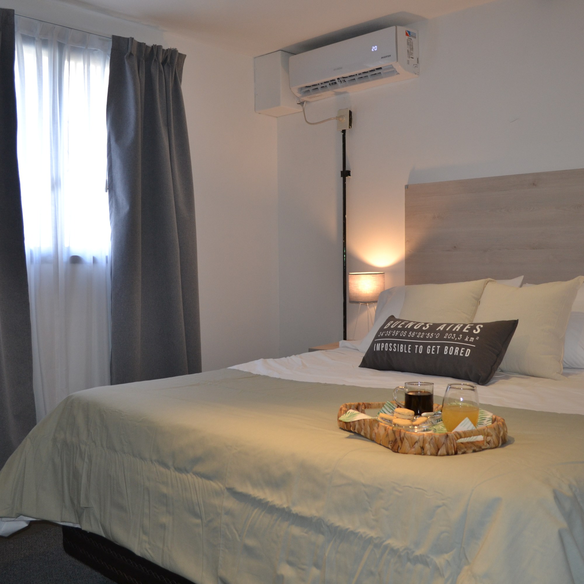 -Dormitorio espacioso: Con una confortable cama Queen, cómoda, perchero, Smart TV y aire acondicionado.