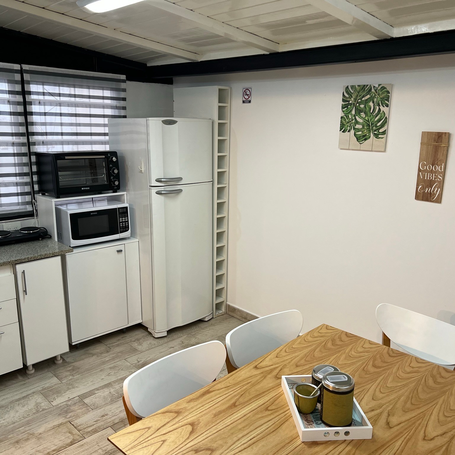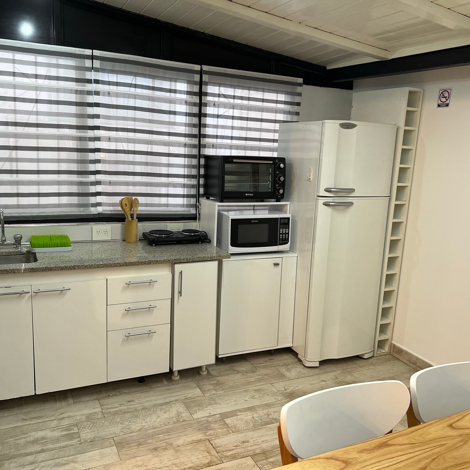 -Cocina grande y totalmente equipada: Con refrigerador grande, microondas, anafe, horno eléctrico, tostadora, hervidor eléctrico.