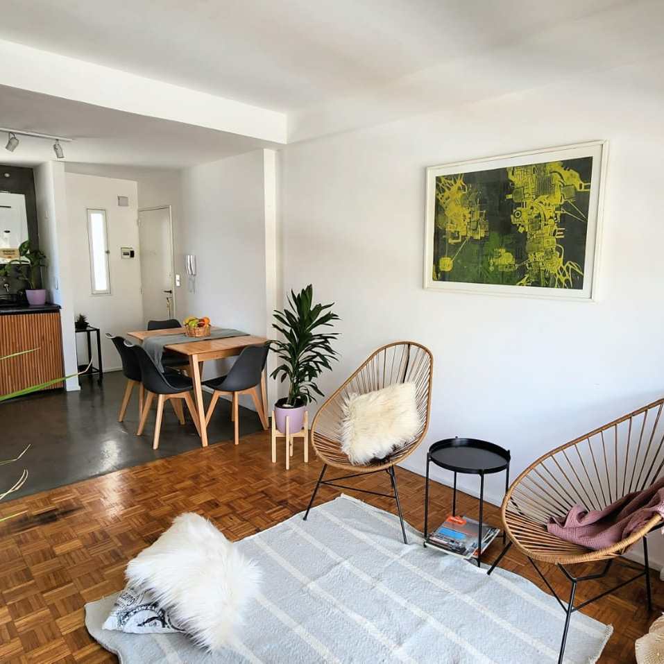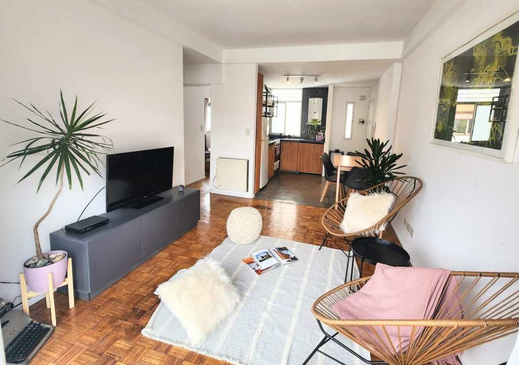 Luminoso tres ambiente de 60 m2, amoblado y equipado.