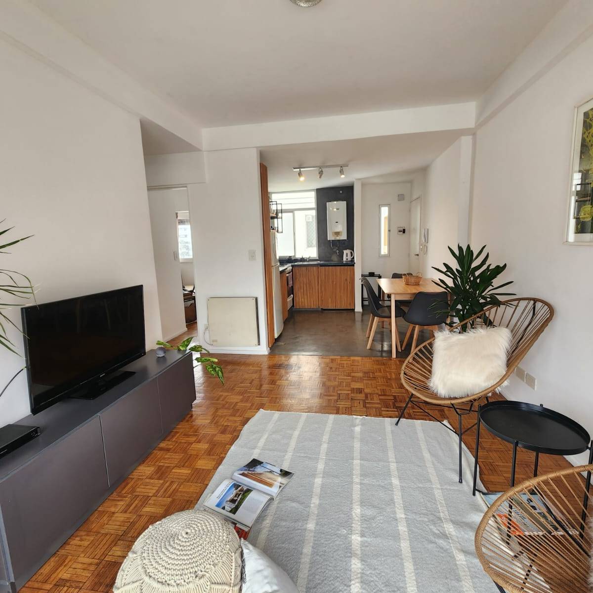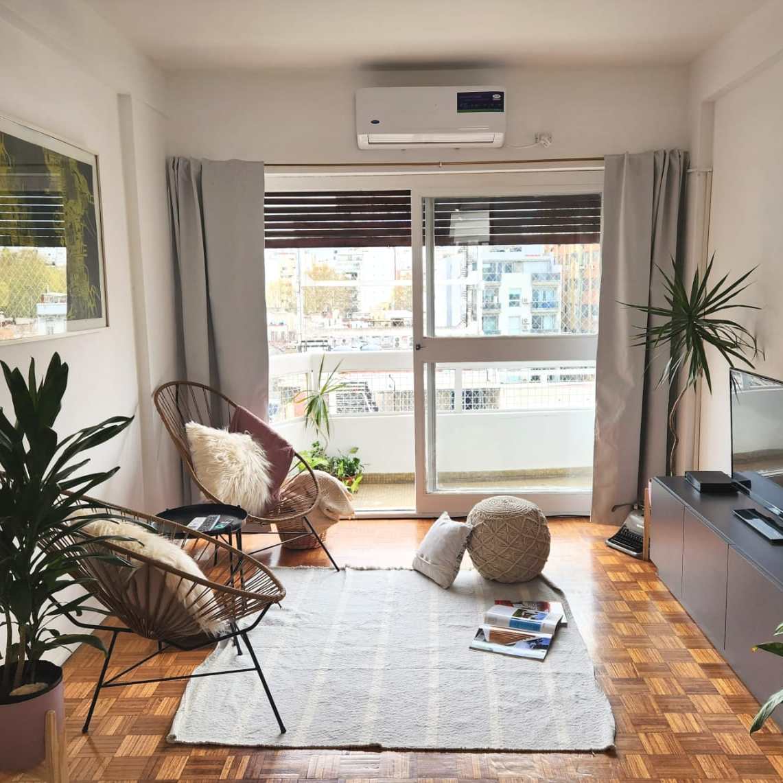 -Living: amplio y luminoso, con pisos de parquet, sillón, TV Smart, aire acondicionado y placas eléctricas para calefaccionar. Cuenta con Internet wi-fi.