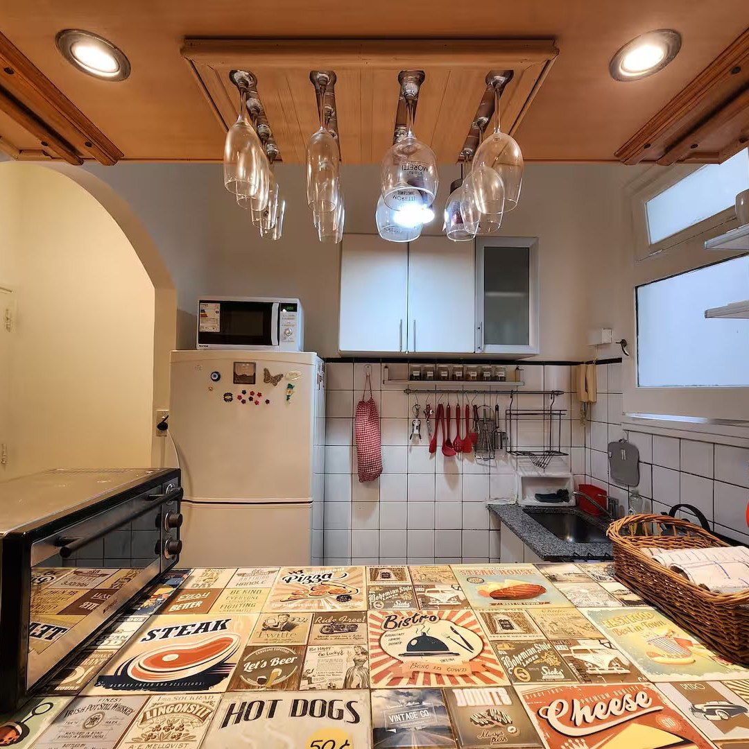 -Cocina: separada por una barra, cuenta con cocina con horno, heladera con frezzer, microondas y vajilla completa.