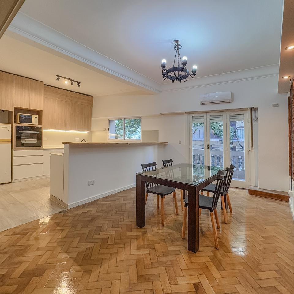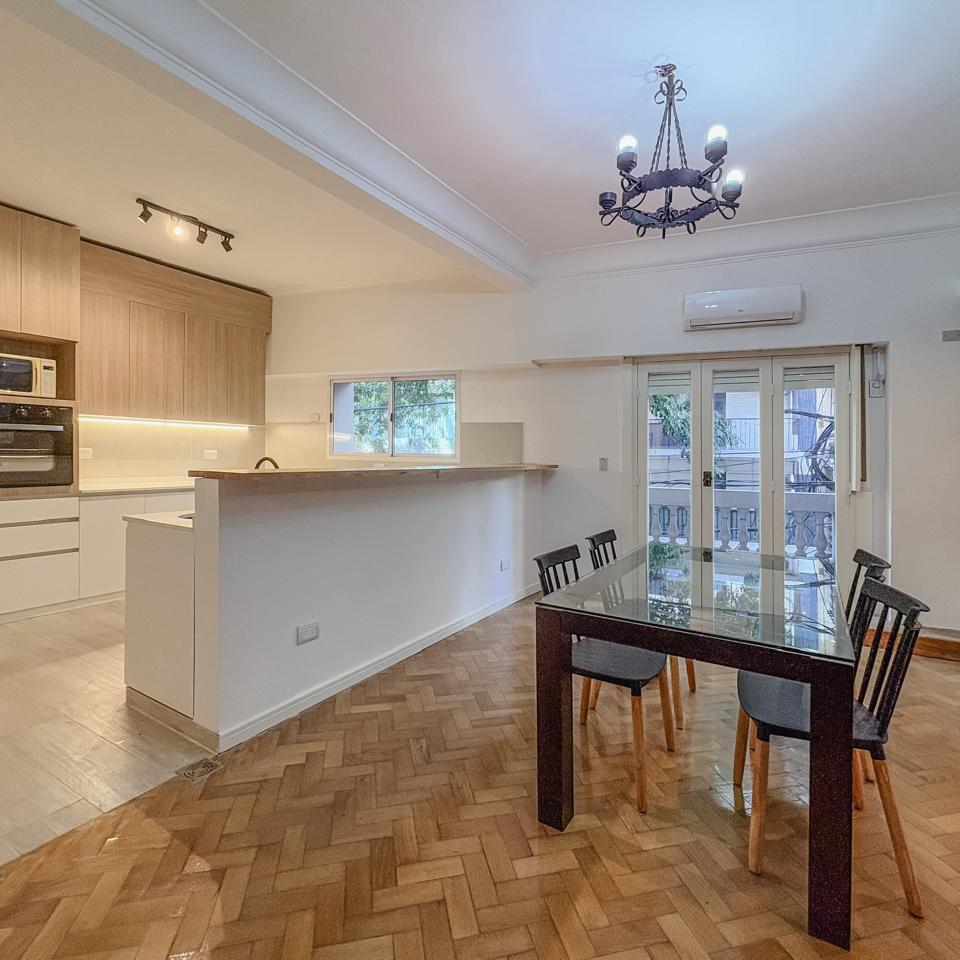 Espectacular cuatro ambientes en un primer piso con balcón al frente, totalmente refaccionado a nuevo. Living comedor super amplio, cocina integrada totalmente nueva.