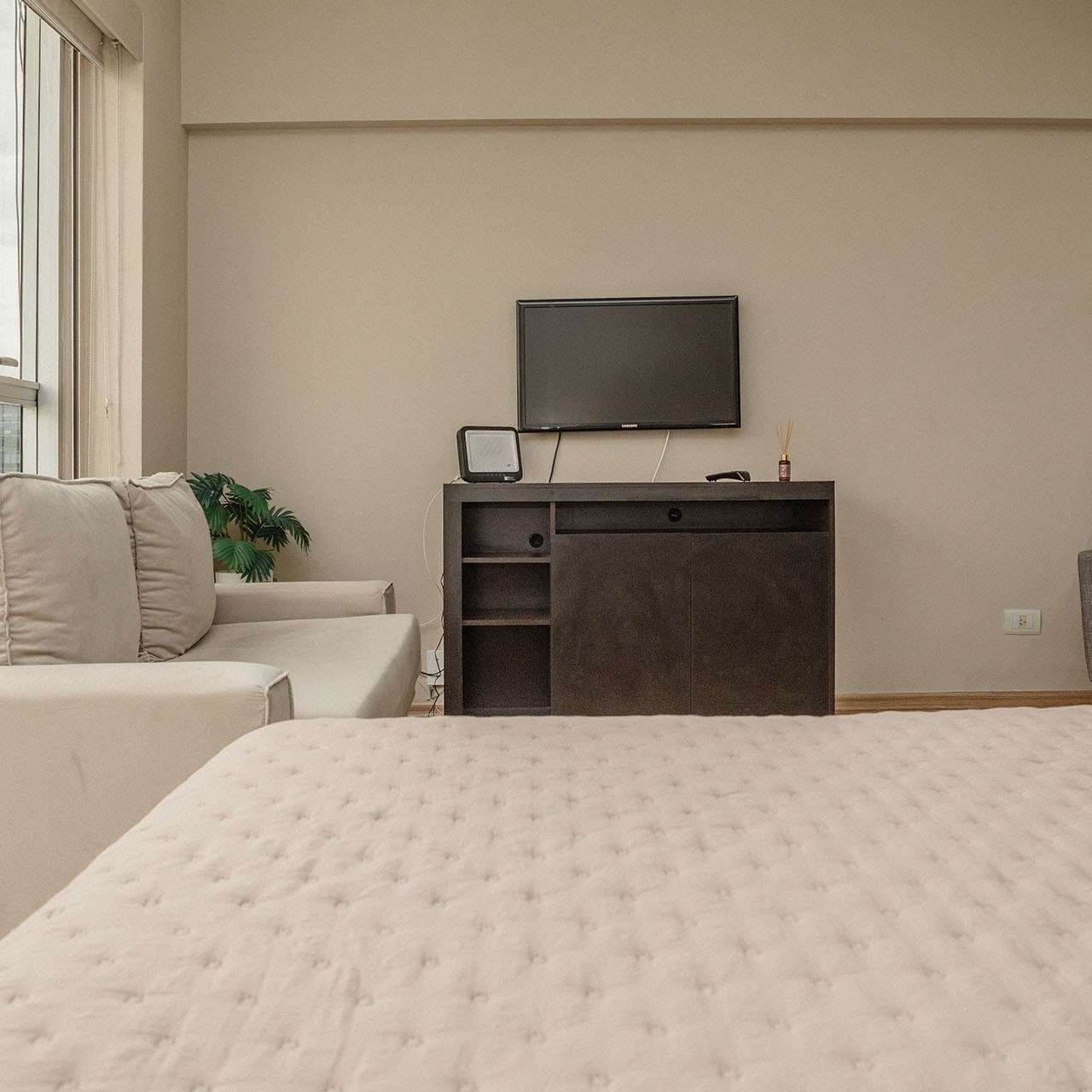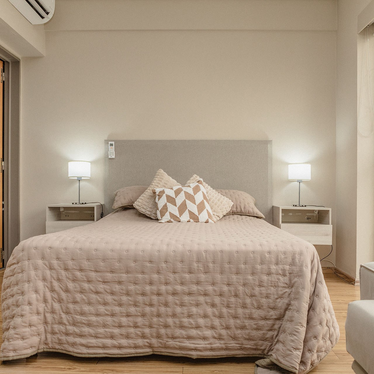 -Cama de dos plazas (Queen) + sofá cama para visitas. Ropa de cama y baño incluida.