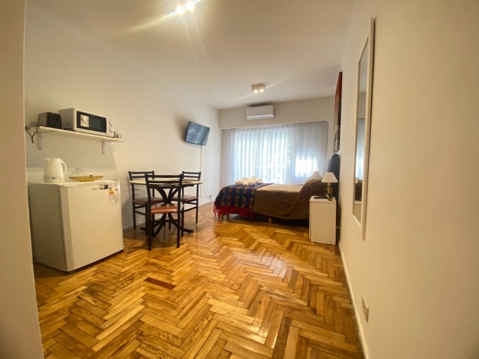 -----LIBRE YA----1 Ambiente- PALERMO- Fray Justo Santa María de Oro 2200- USD 490 + luz, el resto de los servicios están incluidos!!! ---Lindo monoambiente amoblado en excelente zona. Amoblado y equipado para 2 personas--- CARACTERISTICAS: -1 Ambiente-30 m2-Balcón al frente-Aire acondicionado frío/calor-Internet wi-fi-TV con Chromecast-Cama doble de 1.50 x 1.90-Ropa de cama: Sábanas y acolchado … Continue lendo CA-1721- 1 Ambiente- Fray Justo Santa María de Oro 2200- USD 490